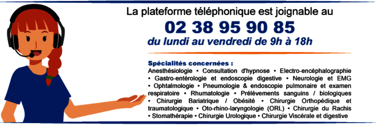 • Gynécologie - Obstétrique : 02 38 95 91 50 (du lundi au vendredi, de 10h à 17h)
