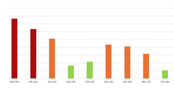Affluence des appels à la plateforme téléphonique selon l’heure de la journée :